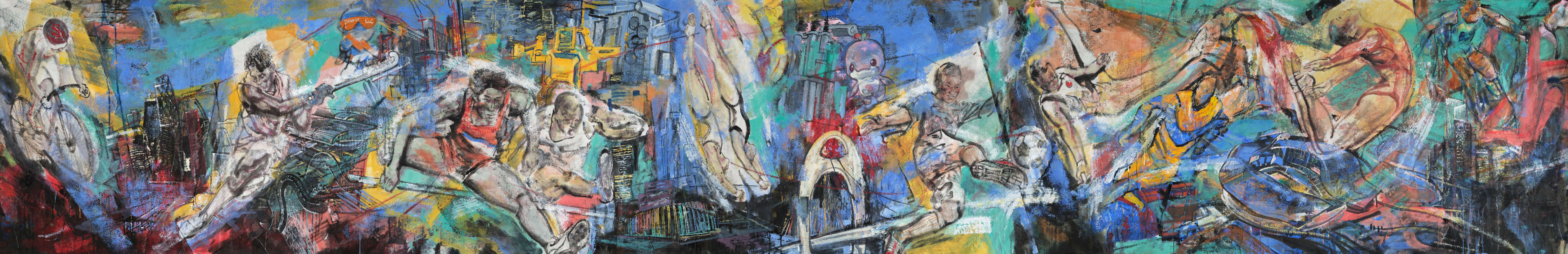油画《全运之光》(180cm×880cm) 作者:宋陆京、刘晟、王卓、周丽萱、崔弥莱、李柳燕等