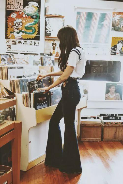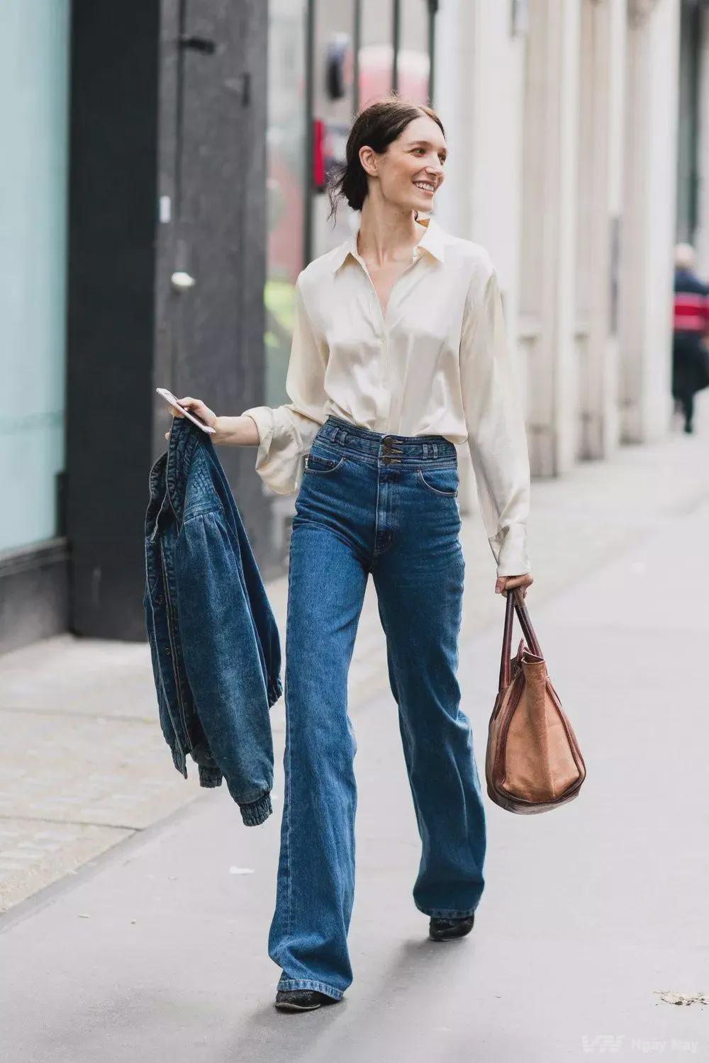 很多时尚博主都喜欢把喇叭裤收入衣柜,用来搭配衬衫,显腿长绝对是这种搭配的主打优势!喇叭裤搭配衬衫,精致耐看,还超级有气质。