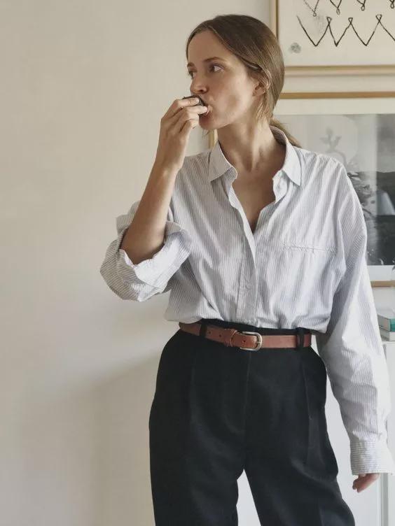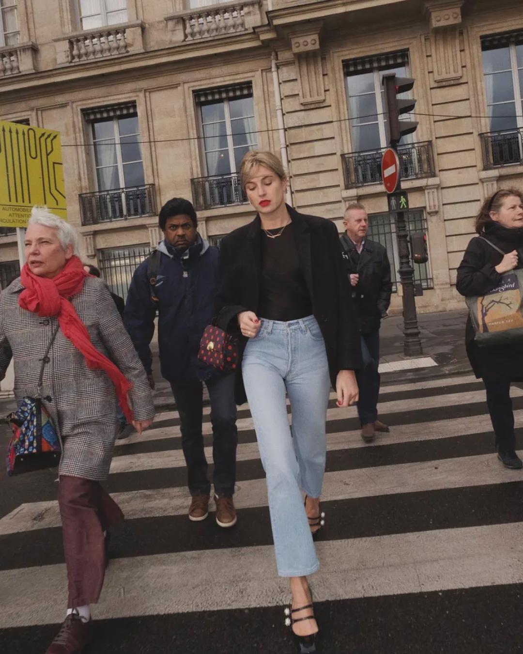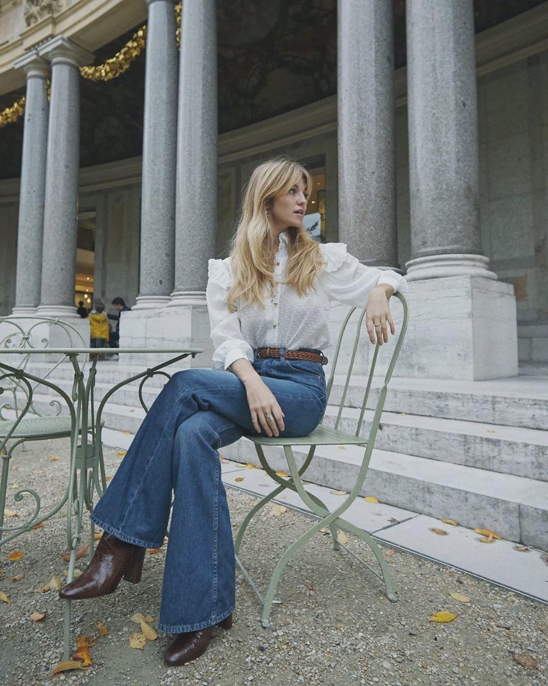就像法国时尚博主 Jeanne Damas,她就经常用这种搭配展现出法式的优雅与随性。
