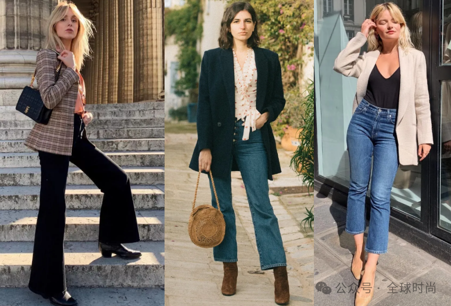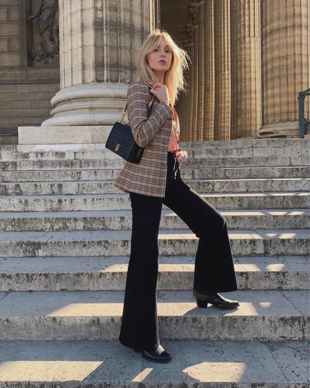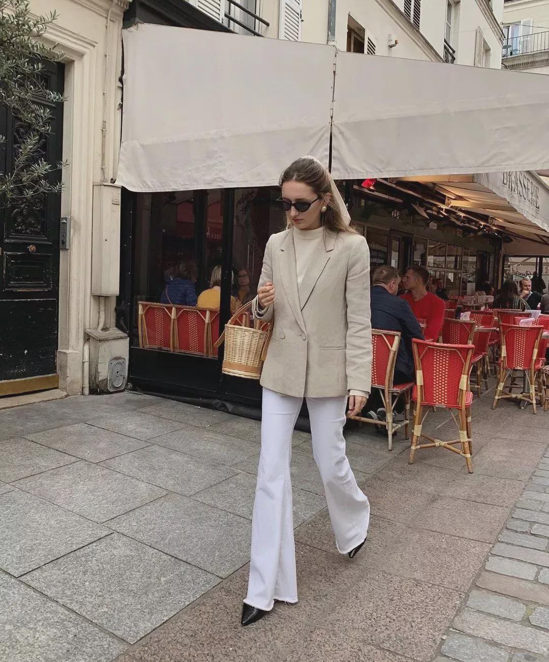 在阔腿裤的风潮过后,喇叭裤又火得一塌糊涂。一条喇叭裤搭配西服,简直时髦得毫不费力!喇叭裤可是法国女孩的必备时尚单品呢。